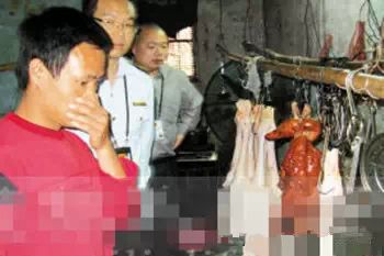 (下图中食品监督工作人员查获病死鸭类制作现场,死鸭的臭味连黑作坊店主自己都觉得掩鼻恶心)