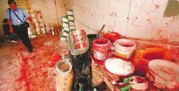 4.红色素(主要上色作用,图为工商人员查获红色素调配现场)